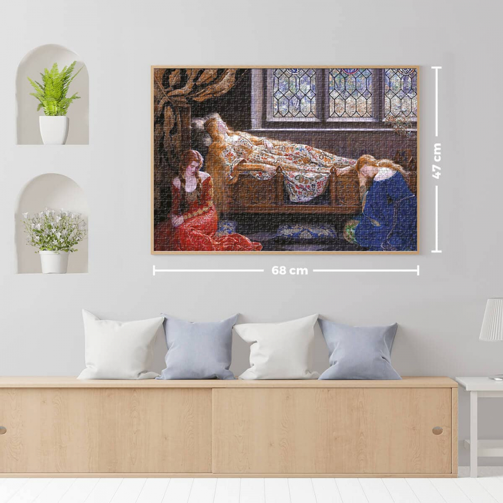 atunci un puzzle pentru adulți ce surprinde o scenă din povestea Frumoasa Adormită, în viziunea pictorului John Collier, va trezi multe amintiri.