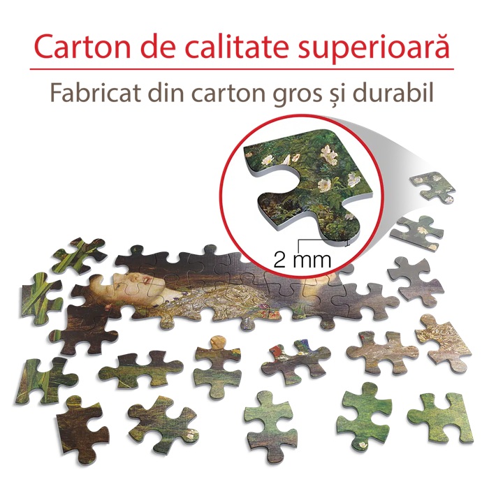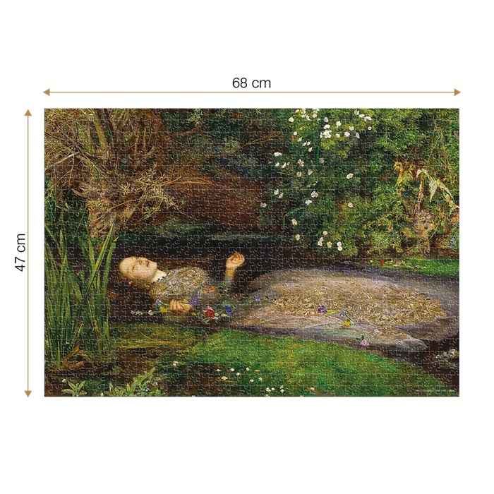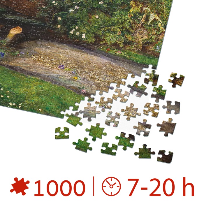 Puzzle 1000 piese John Everett Millais – Ophelia este reproducerea celebrului tablou inspirat dintr-o scenă din Hamlet de Shakespeare.