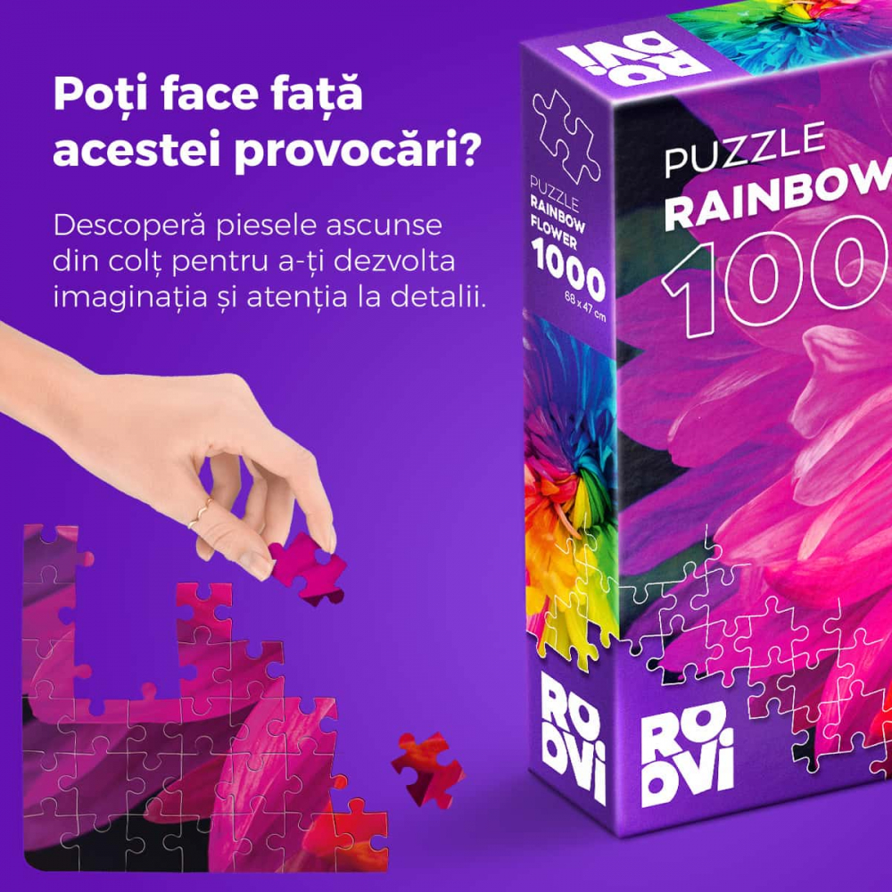 Puzzle 1000 piese – High Difficulty – Rainbow Flower este cadoul ideal care se pretează la diverse ocazii, de la zilele aniversare, la sărbătorile de iarnă.