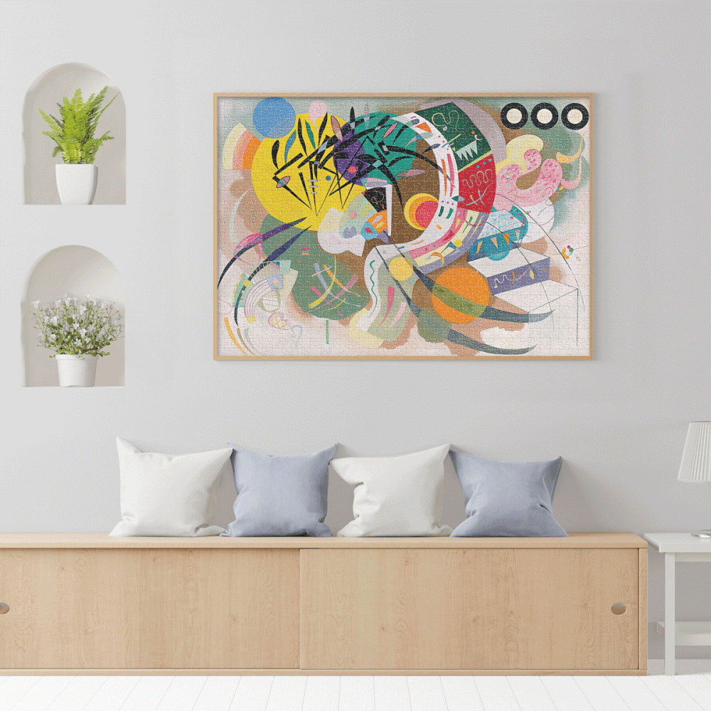 Cumpără puzzle de artă Wassily Kandinsky – Dominant Curve/Curbă dominantă și conectează-te la o lume uimitoare, plină de simbol și culoare.