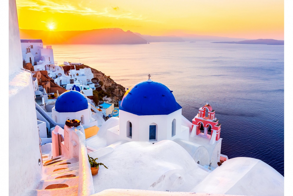 Puzzle 1000 piese Sunrise over Santorini Greece