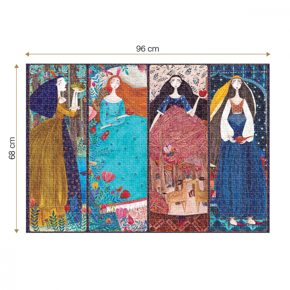 Dacă iubești poveștile și îți place să regăsești farmecul copilăriei în imagini deosebite ce te duc înapoi în cei mai fericiți ani ai vieții, vei aprecia și mai mult puzzle 2000 piese The Frog Prince, Sleeping Beauty, Snow White, Arabian Nights.