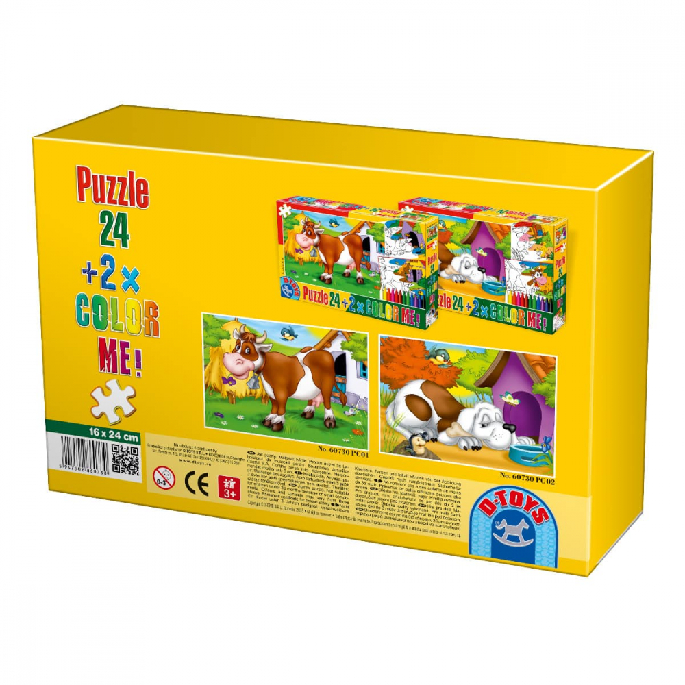 Puzzle 24 piese si 2 planse de colorat cu animale