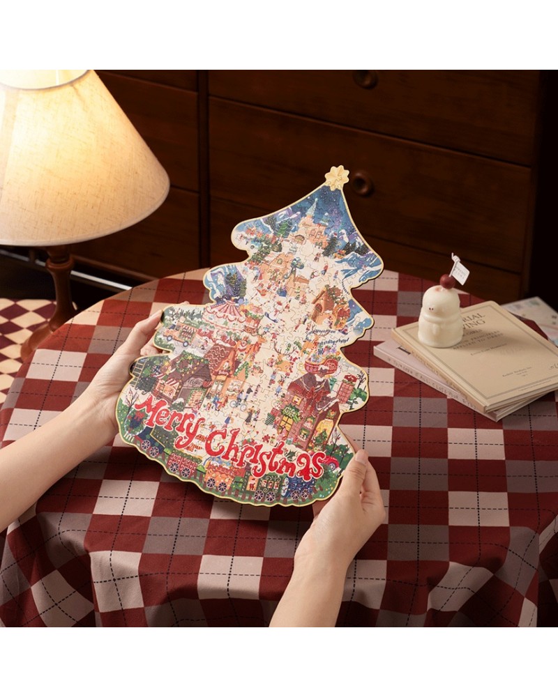 Pășește într-o lume de iarnă de poveste cu acest puzzle din lemn în formă de brad de Crăciun, semnat Rowood.