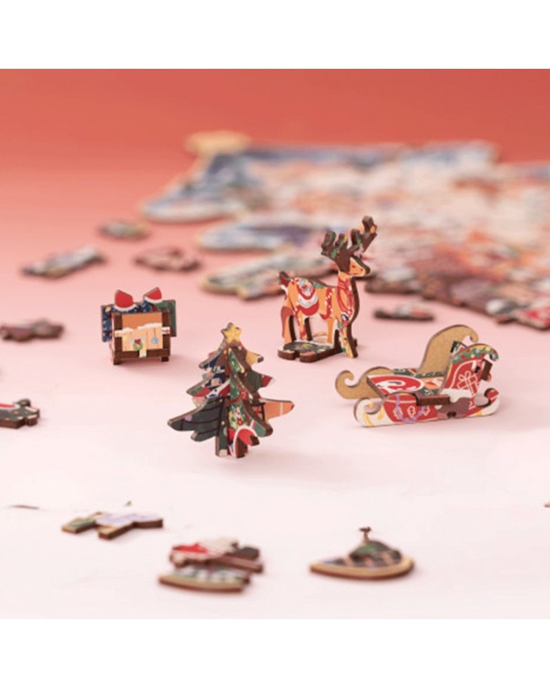 ·Extra: partea din spate este ilustrată, iar multe piese pot fi folosite separat ca decorațiuni de Crăciun pe masă sau pervaz.