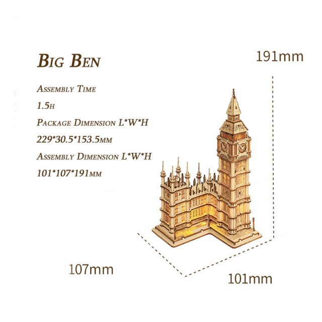 Puzzle 3D Big Ben RoLife din Lemn 220 piese