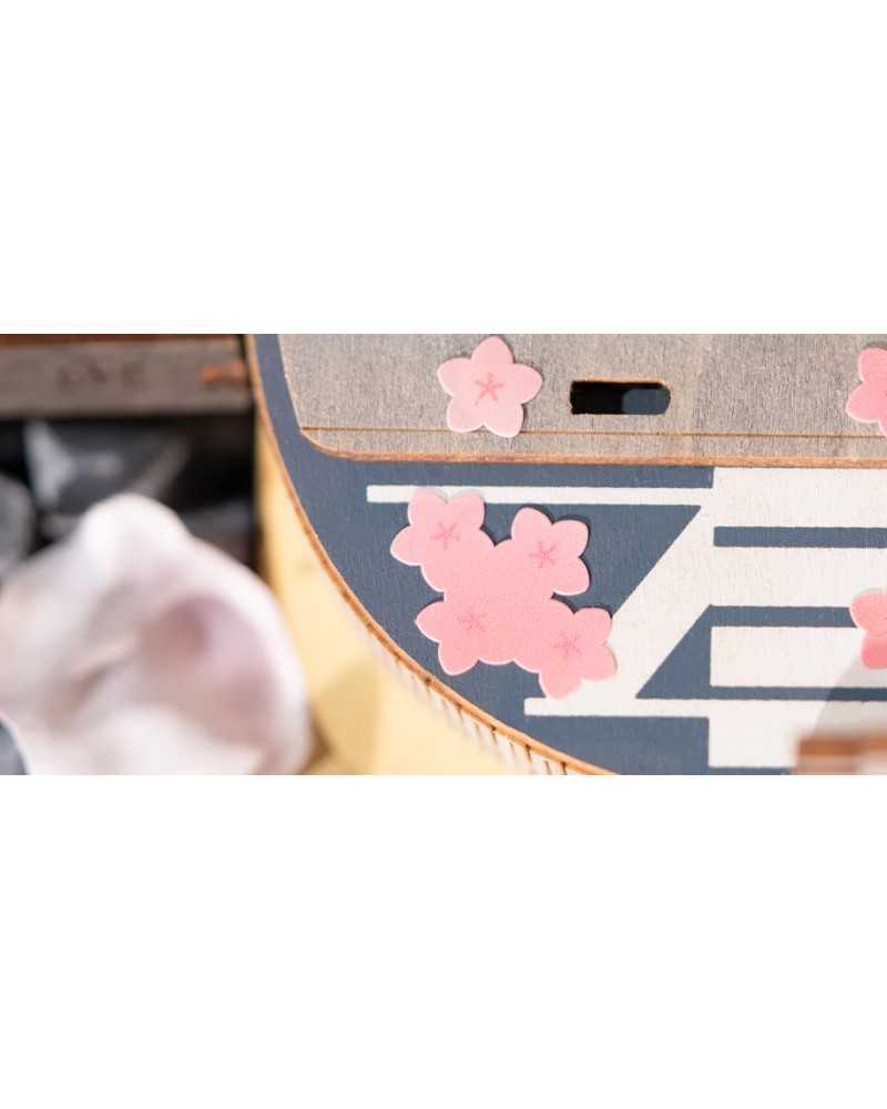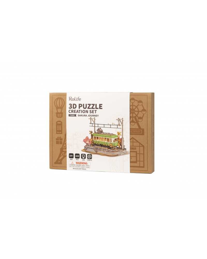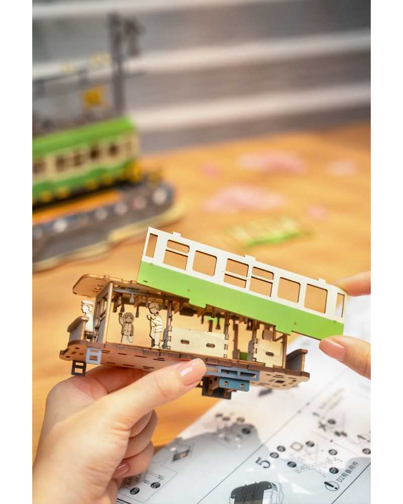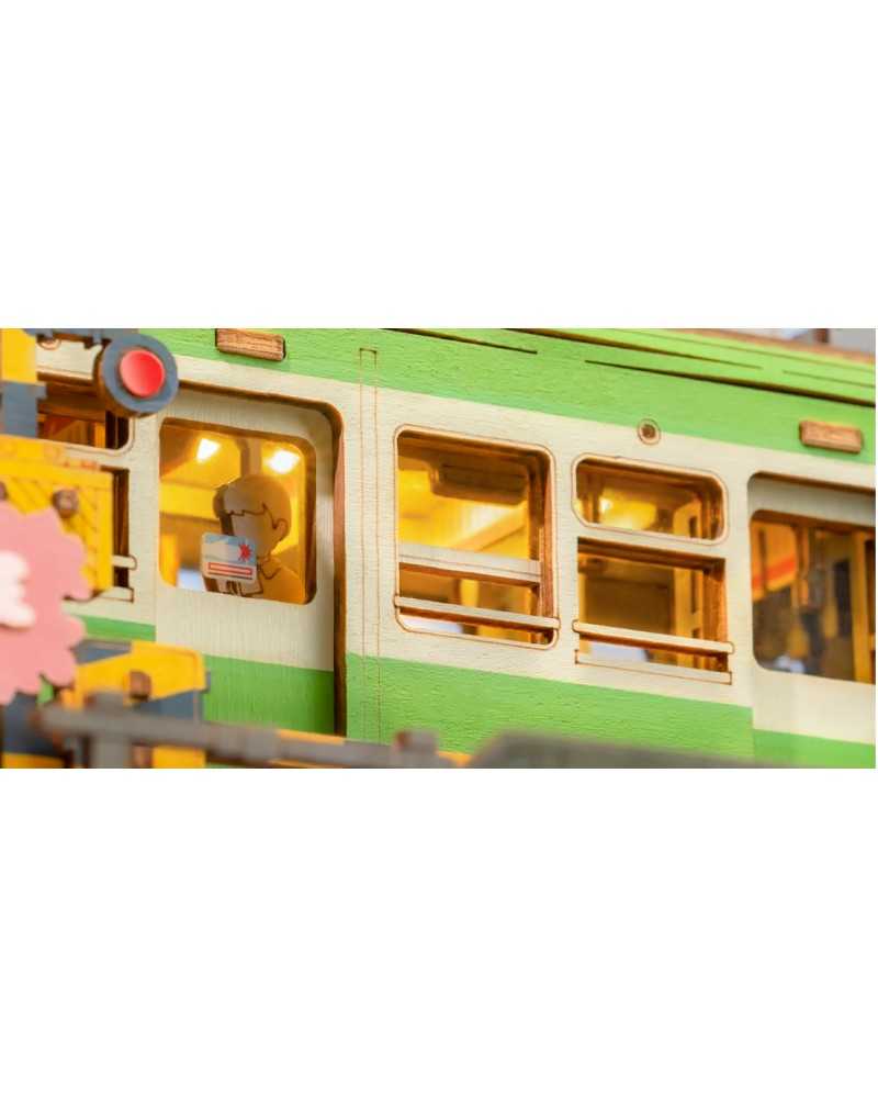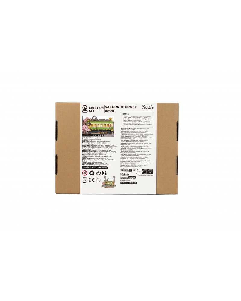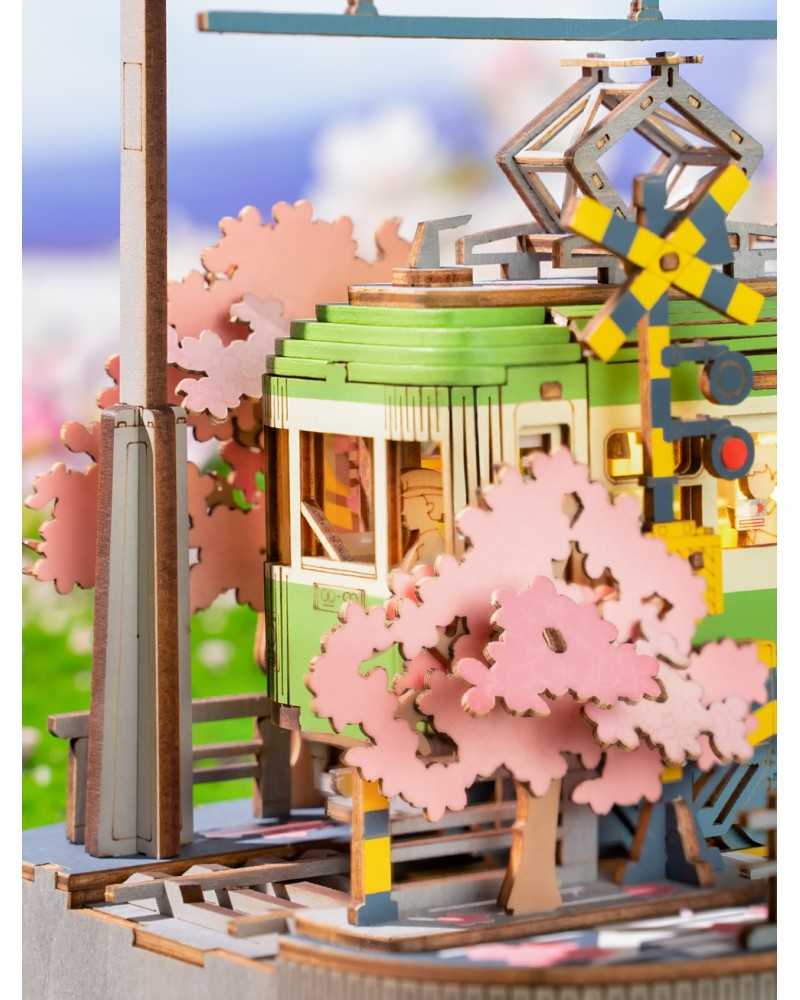 Dacă sunteți nou în tradiția Sakura, am dori să vă explicăm despre ce este vorba. Acest tramvai verde amuzant stă lângă un cireș înflorit. Sezonul înfloririi cireșilor este foarte important pentru japonezi. Ei picnicesc sub copaci pentru a comemora trecerea vieții și a sărbători viața nouă. Frumos, nu-i așa? În mod tradițional, ei călătoresc spre sau de-a lungul florilor, adesea într-un tramvai verde. Acest tramvai drăguț de la Rolife cu lumini este inclus într-un kit de construcție din lemn pentru adulți.