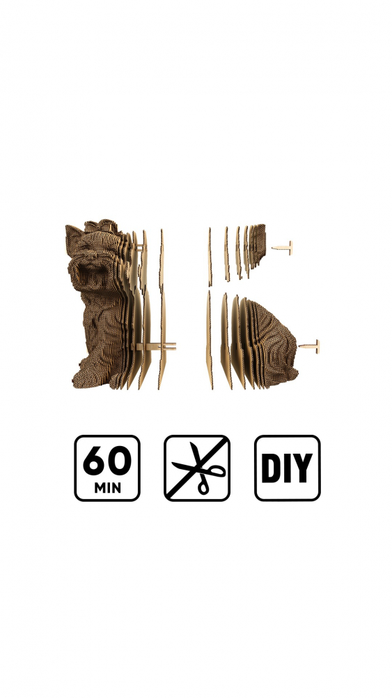 Este un kit pre-tăiat cu felii de carton, ușor de asamblat, pas cu pas.