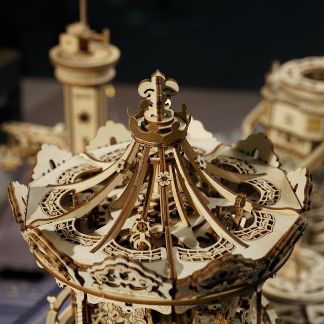 Puzzle 3D, lemn, cutiuta muzicala, Carusel Romantic, 337 piese