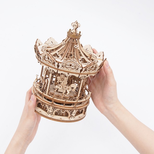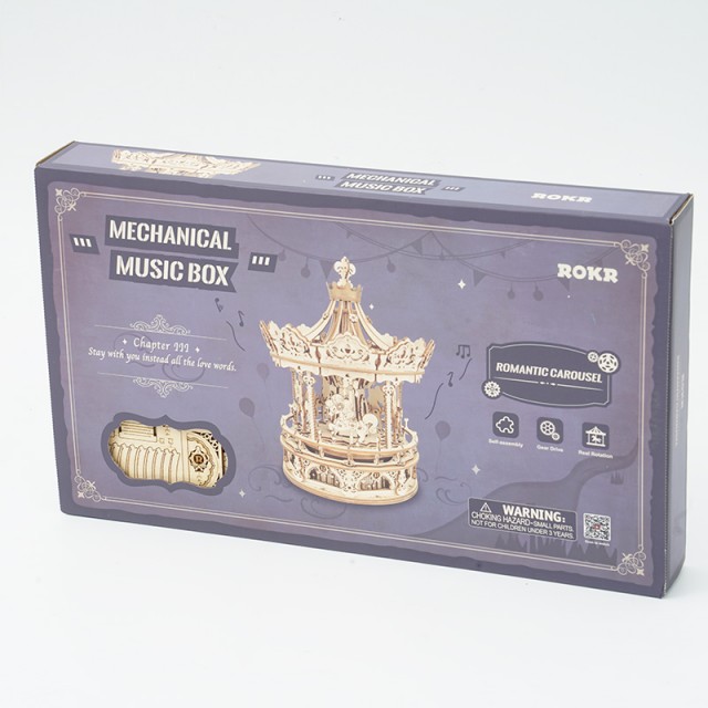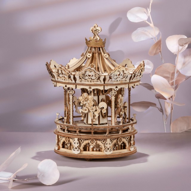 Puzzle 3D Cutiuta muzicala carusel romantic Rokr lemn 337 piese