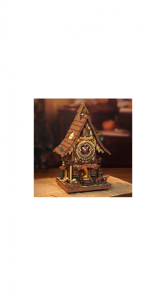 Inspirat din căsuțele din pădure și elementele fermecate ale basmelor, acest puzzle 3D din lemn este atât o piesă decorativă spectaculoasă, cât și un ceas funcțional care aduce bucurie fiecărei ore.