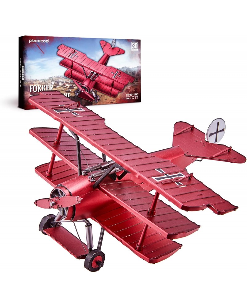 Cu 162 de piese din otel inoxidabil, acest model reconstituie faimosul avion triplan Fokker DR-1, pilotat de celebrul as Manfred von Richthofen, cunoscut sub numele de Baronul Rosu.