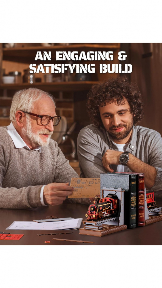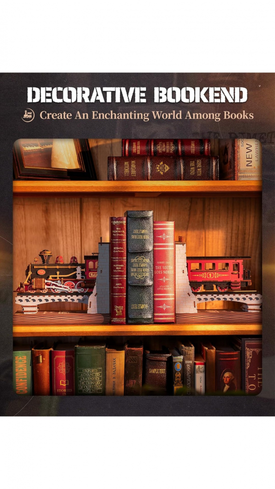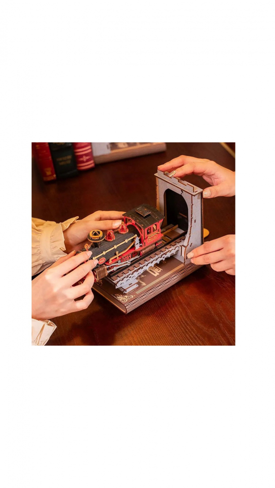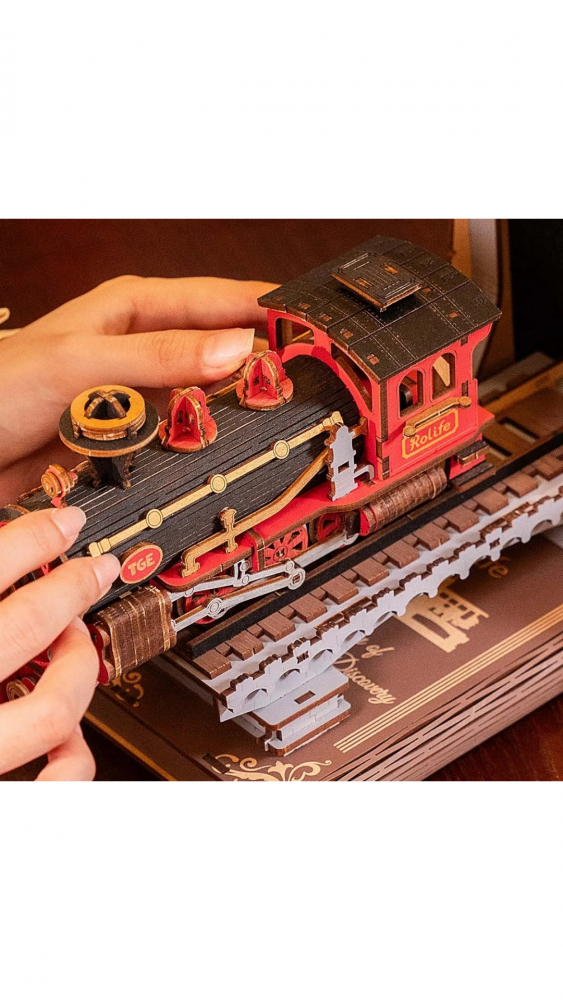 Modelul Trenul Cărților TGE01 de la Rolife este o dioramă pentru bibliotecă sau un puzzle 3D din lemn care îți oferă posibilitatea de construi o piesă decorativă impresionantă.