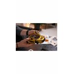 Această mașină galbena strălucitoare nu doar atrage privirea, ci este și echipată cu uși care se deschid și un mecanism cu arc care îi permite să accelereze înainte după încărcare.