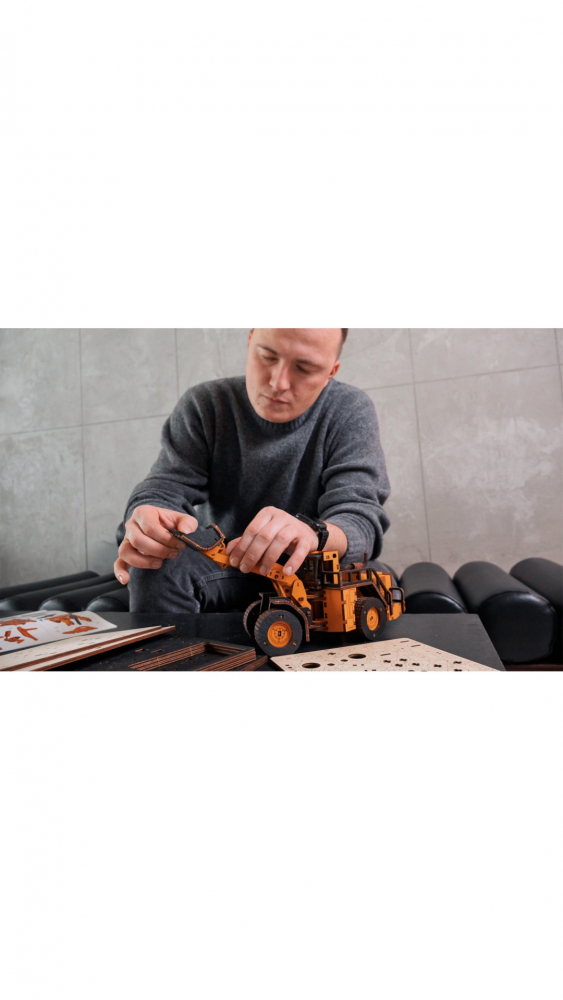 Kitul de construcție din lemn „Încărcător” este un model minunat, care va fi un cadou excelent pentru copii și un hobby captivant pentru adulți.