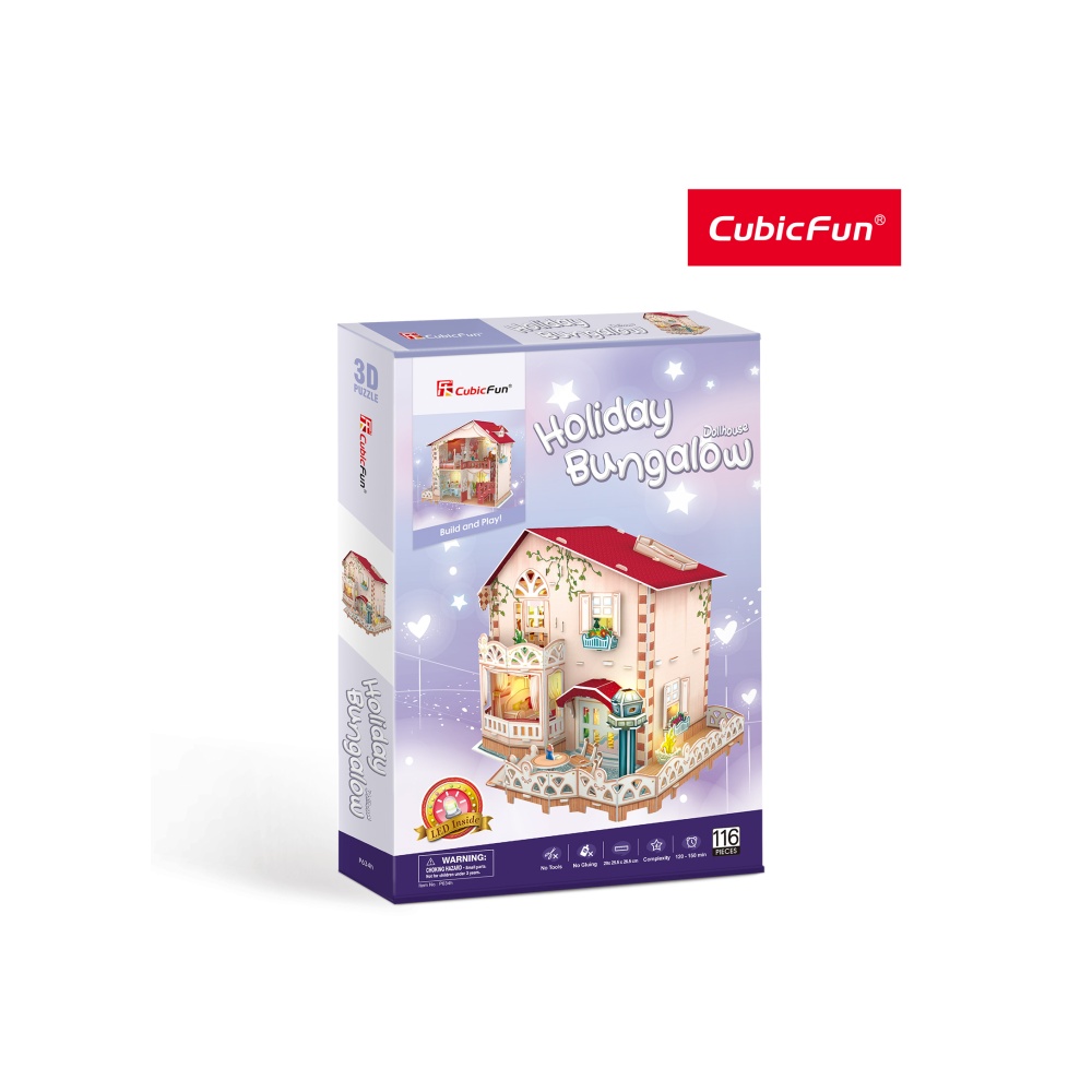 PUZZLE 3D LED CASA DE VACANTA 116 PIESE de la CubicFun te invita sa-ti construiesti o casuta foarte eleganta si draguta, cu un etaj si multe decoratiuni.
