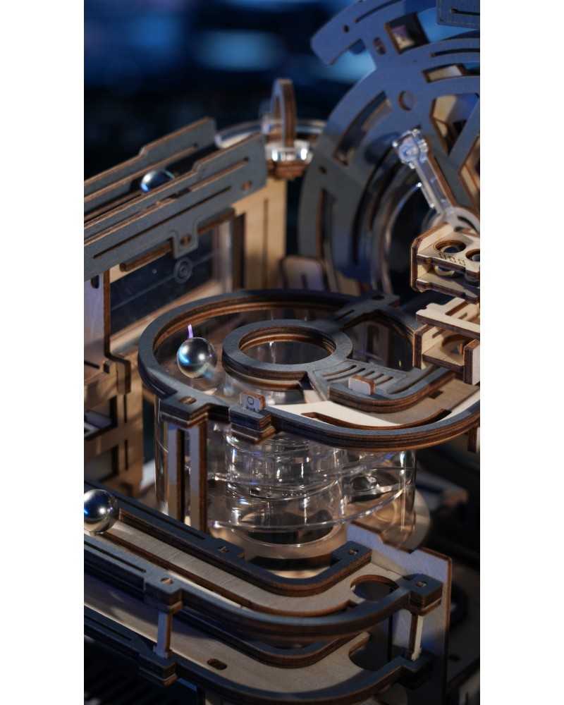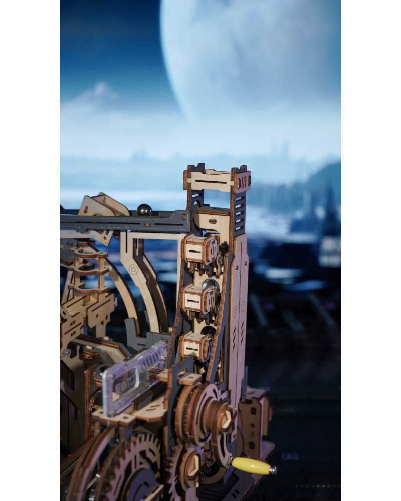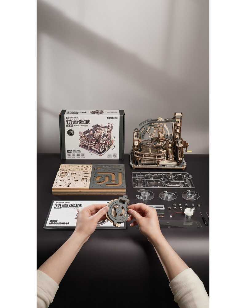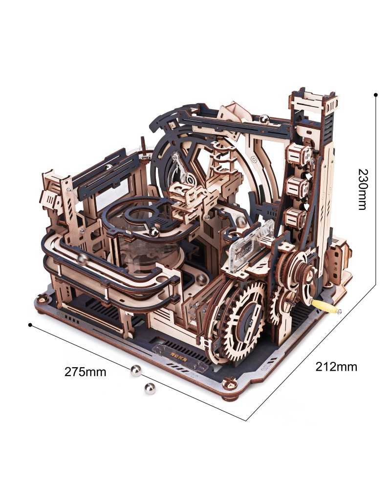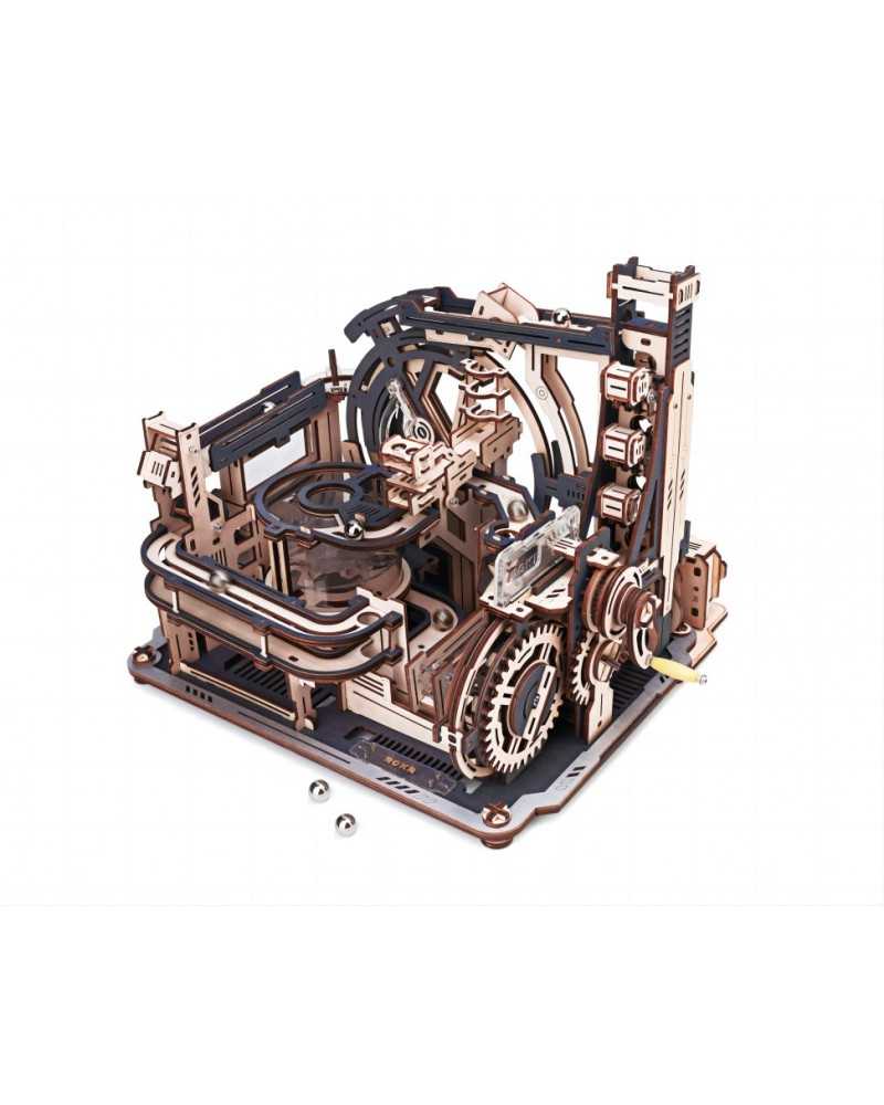 Sau da, pentru că pur și simplu este prea strălucitor, prea fascinant și prea frumos pentru a fi adevărat. Acesta este cu adevărat regele pistelor din lemn Robotime și ROKR. Nu numai că modelul este incredibil de frumos la privit cu elementele sale negre și colorate naturale, dar ce părere aveți despre scările de ridicare care se deplasează pe verticală? Sau o spirală de accelerație transparentă? Cum rămâne cu trenul de mare viteză? Cele 10 bile de oțel își iau fiecare propria cale în jos, puteți alege multe rute diferite. Și asta este ceea ce vei construi.