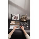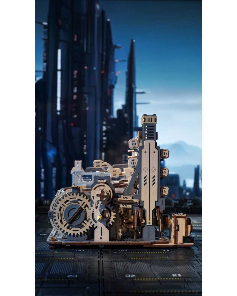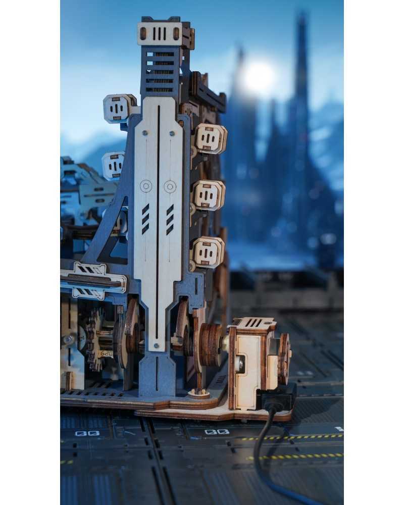 Da, mecanisme de transmisie cu roți dințate din lemn. Vă întrebați cum este posibil acest lucru? Dar chiar funcționează. Cel puțin o dată ce ați adunat cele 472 de piese de puzzle ale acestui puzzle 3D din lemn. În principiu, faci asta fără lipici. Combinati majoritatea acestui kit de construcție din lemn pentru adulți folosind conexiuni plug-in. Scoateți piesele din matrițe presându-le sau tăind piesele de legătură cu un clește. Dacă te-ai săturat să răsucesti manivela, pur și simplu conectează-l cu un cablu USB și kitul tău trece brusc de la mecanic la electric!