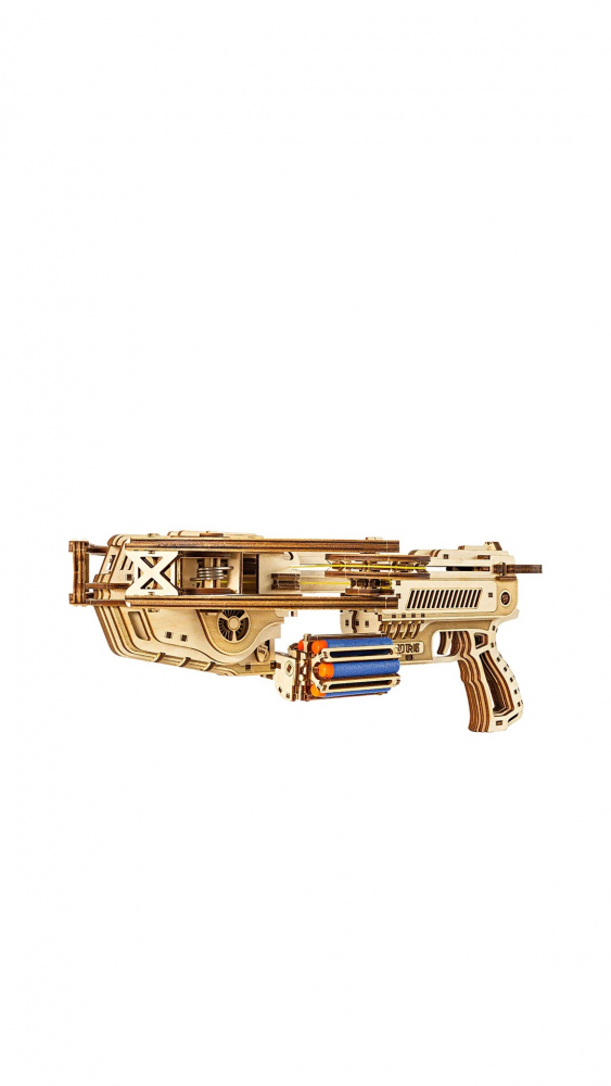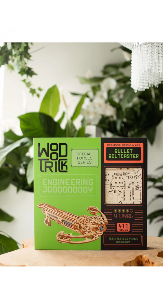 Bullet Boltcaster (Aruncatorul de gloante) este un model 3D din lemn personalizat de la WoodTrick, cu un proces de asamblare captivant si mecanisme interne complexe.