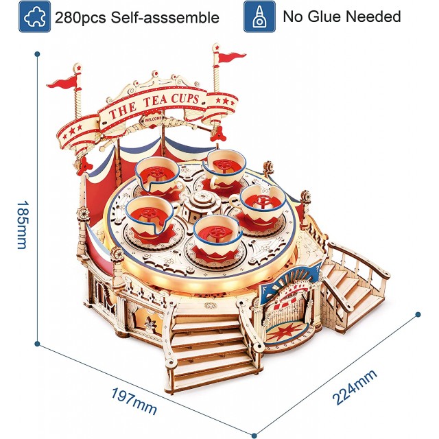 Puzzle 3D Mecanic Cutiuta muzicala Cescute rotitoare Rokr din lemn 280 piese