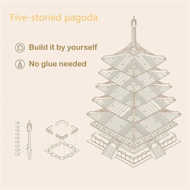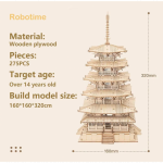 Puzzle 3D Pagoda cu cinci etaje lemn Rokr 275 piese