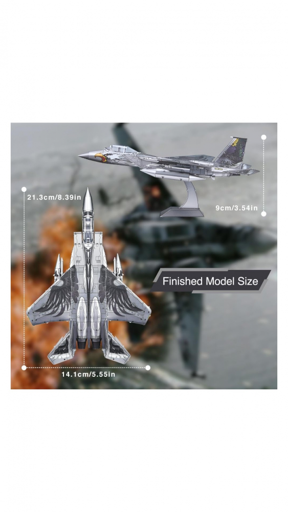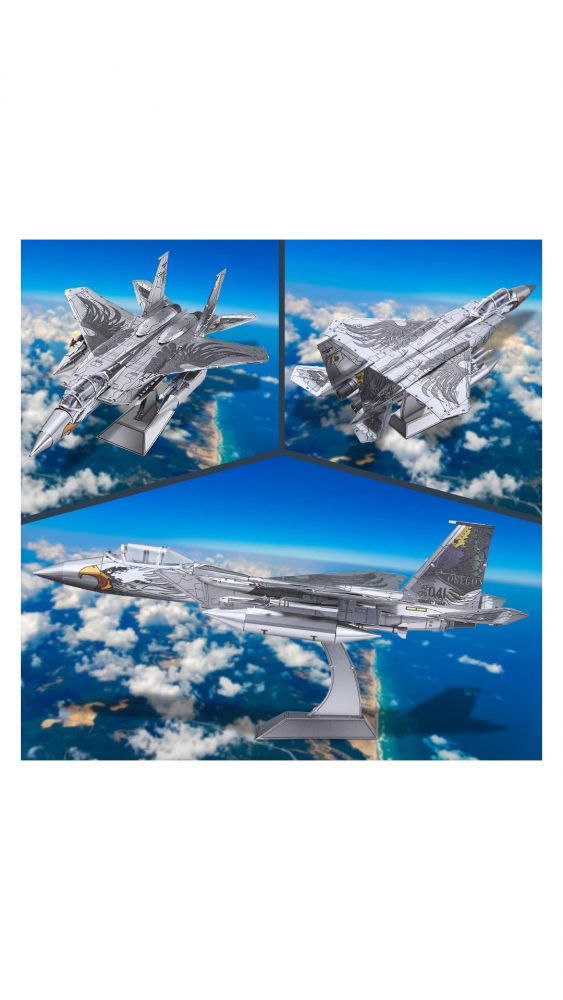Acest puzzle unic, format din 84 de piese, oferă o experiență captivantă de asamblare a unei replici detaliate a legendarului avion de vânătoare F-15.