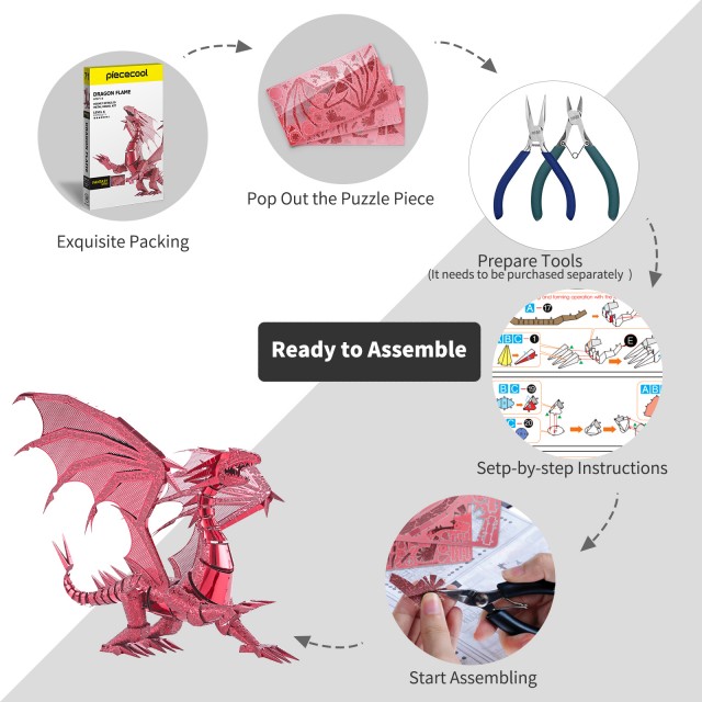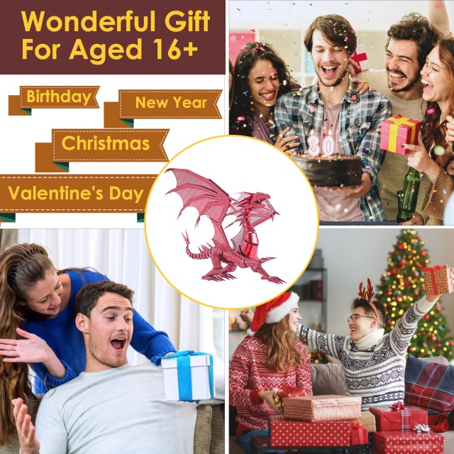 Puzzle 3D Piececool Dragonul Rosu metal 115 piese