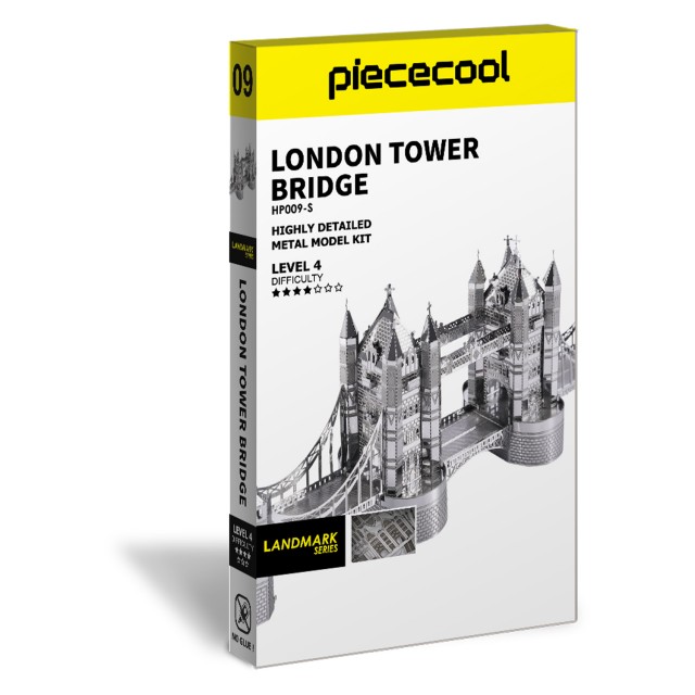 Puzzle-ul Tower Bridge de la Piececool celebrează construcția în mare parte metalică a podului, cu detalii excepționale în foile de alamă gravate.