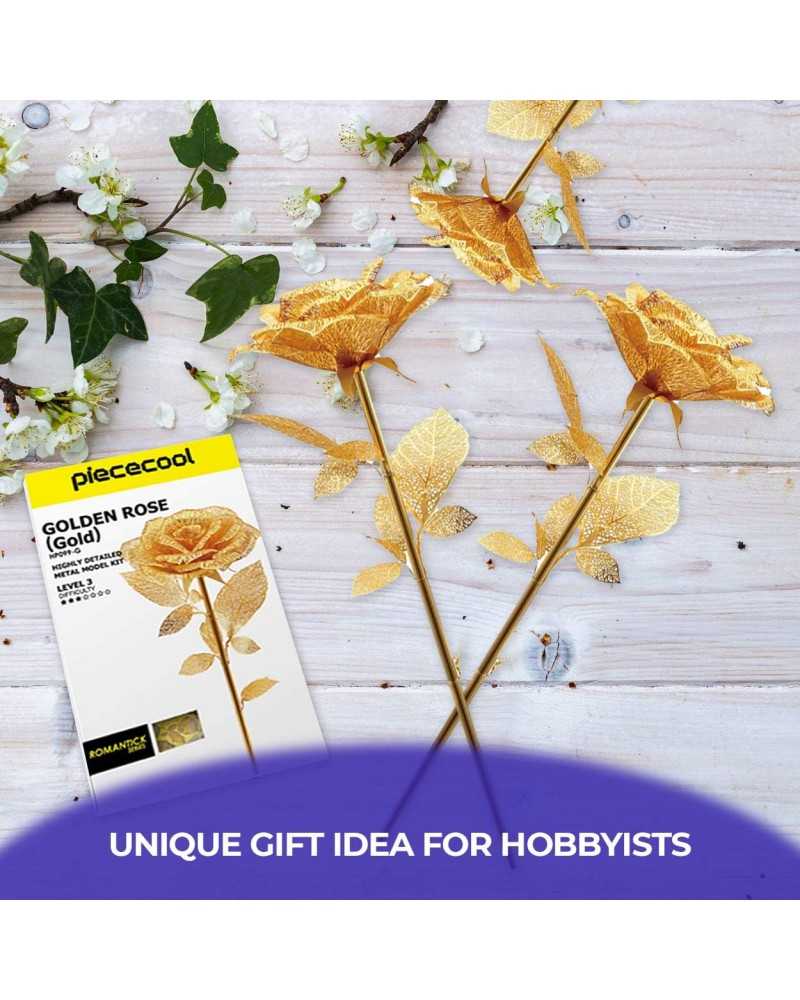 Puzzle 3D Piececool metal 15 piese Trandafirul auriu