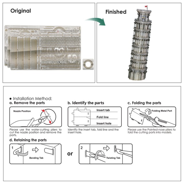 Puzzle 3D Piececool Turnul de Pisa, Metal 127 piese