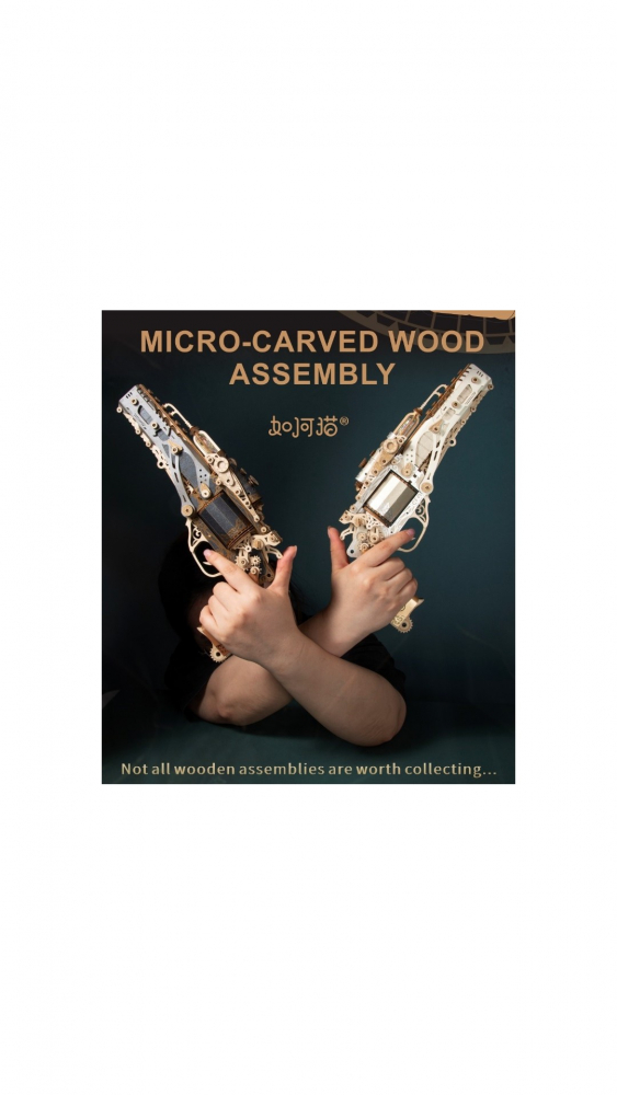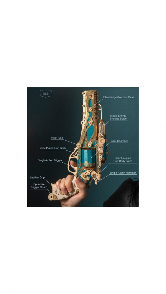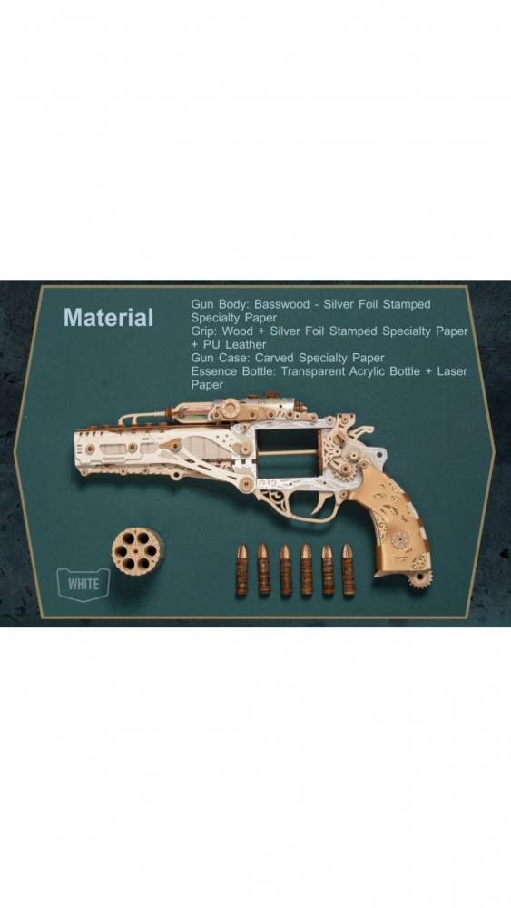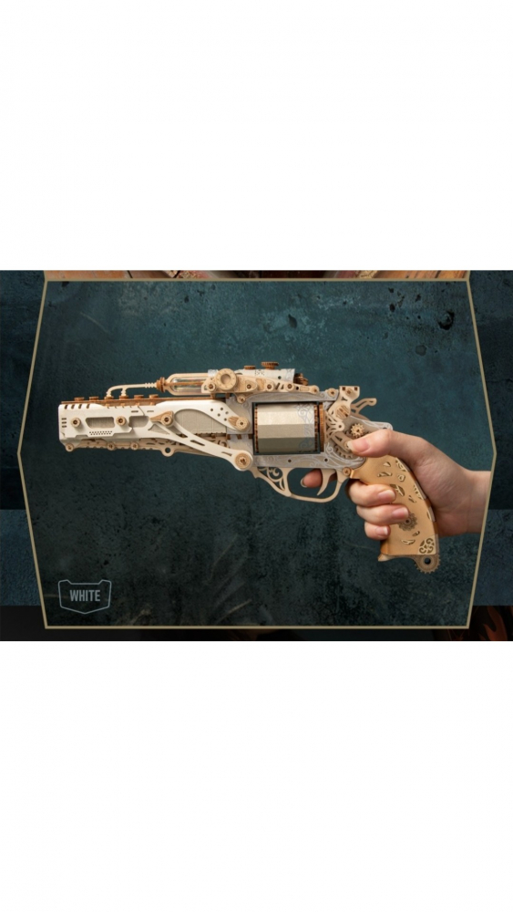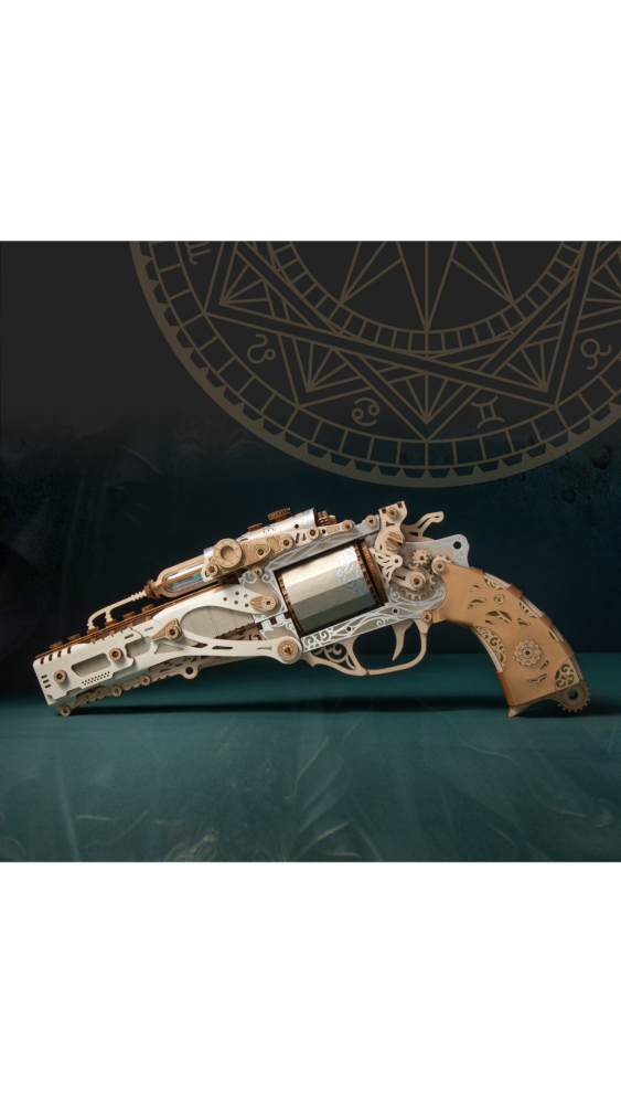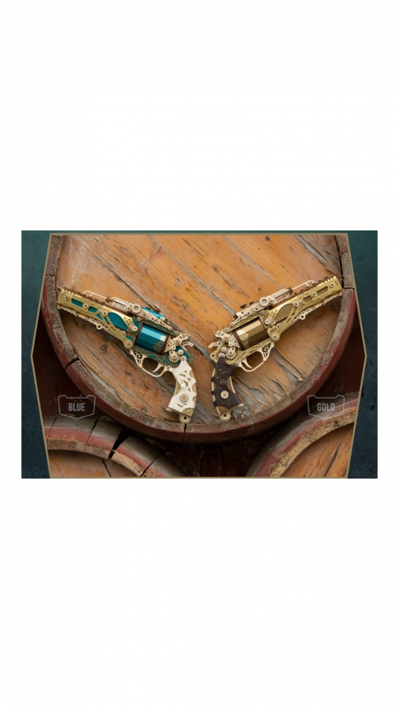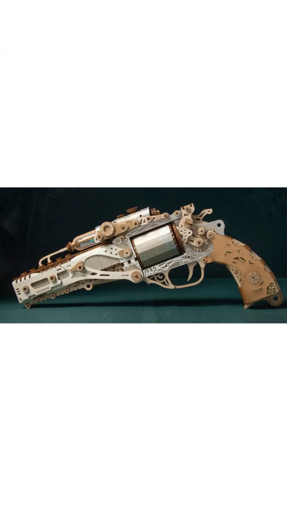 Puzzle-ul 3D din lemn Revolverul clasic integrează esența designului steampunk, realizat cu meticulozitate din panouri din lemn de atent selectate, piele PU de înaltă calitate și hârtie specială mai prețioasă decât cuprul.