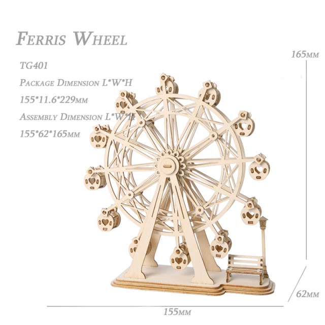 Puzzle 3D Roata mare lemn Rokr 120 piese