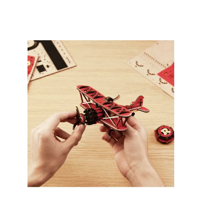 Descoperă farmecul zborului cu acest puzzle 3D din lemn, care aduce la viață un biplan clasic într-un mod interactiv și educativ.