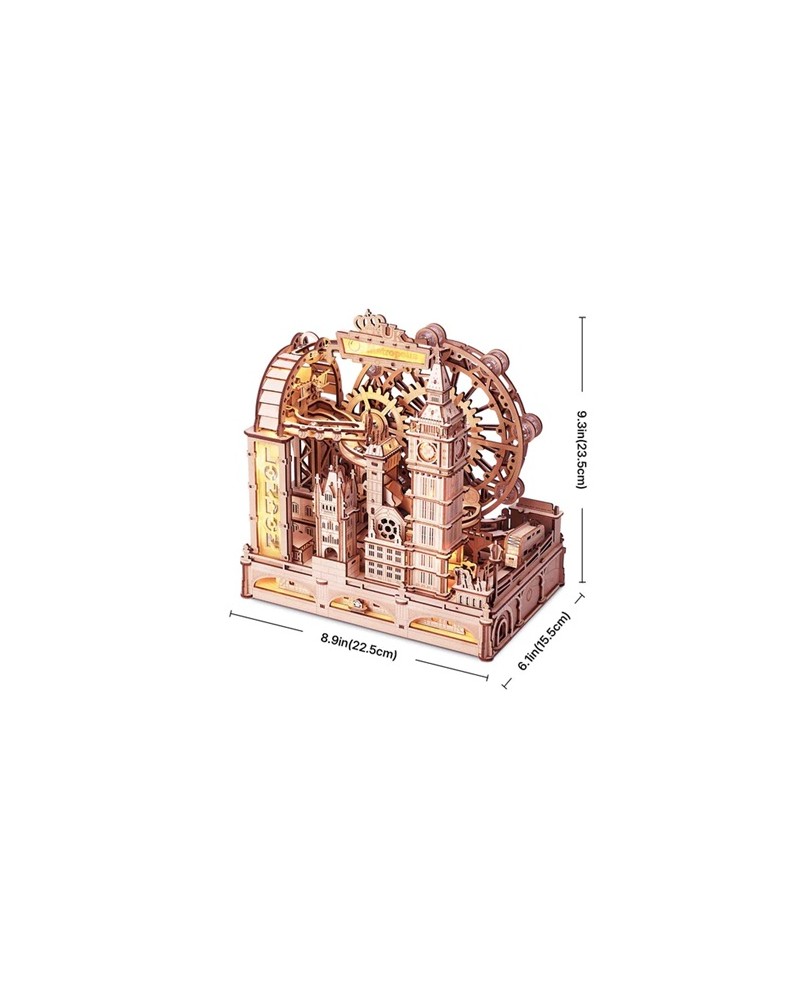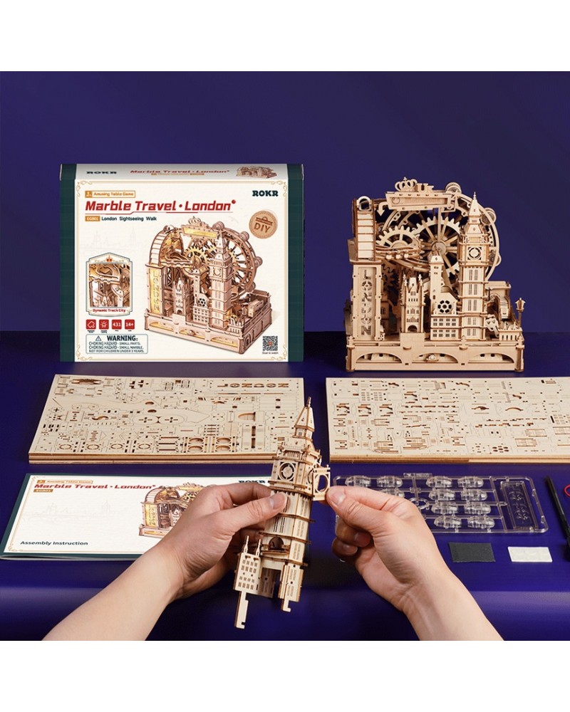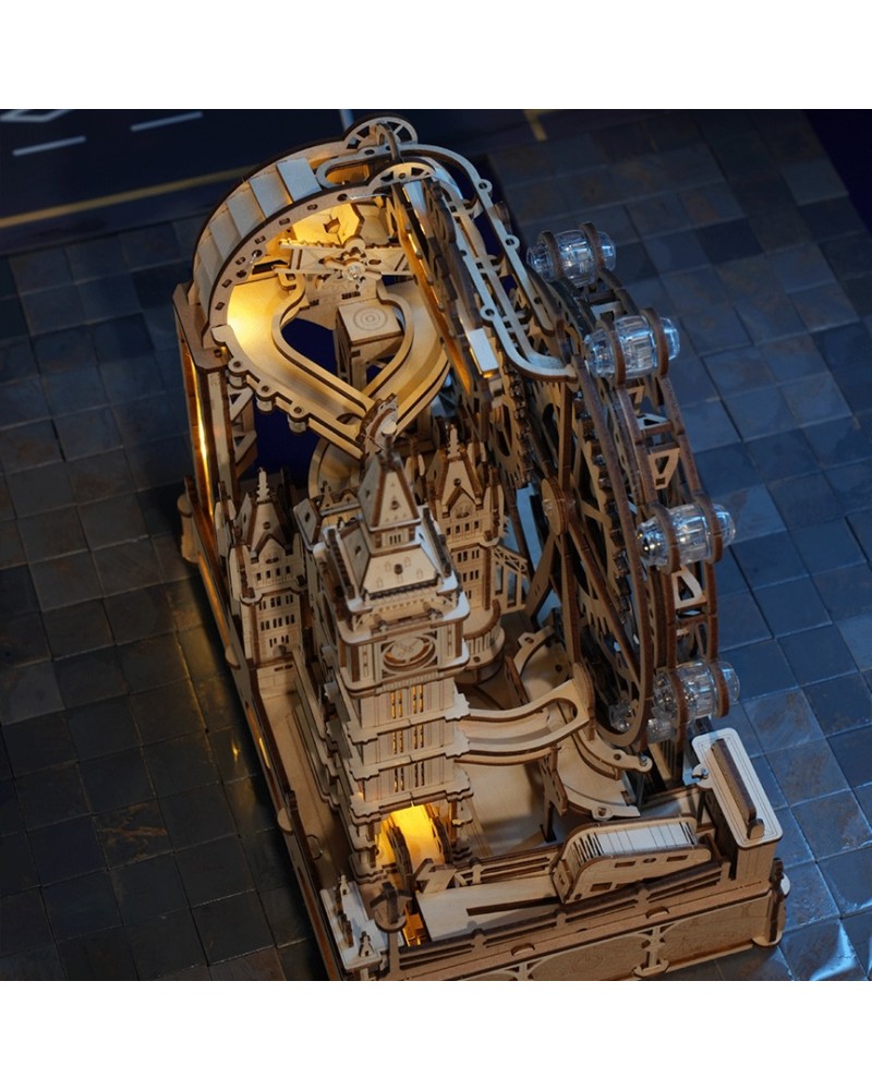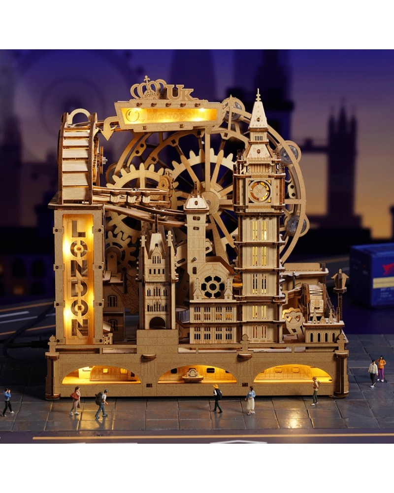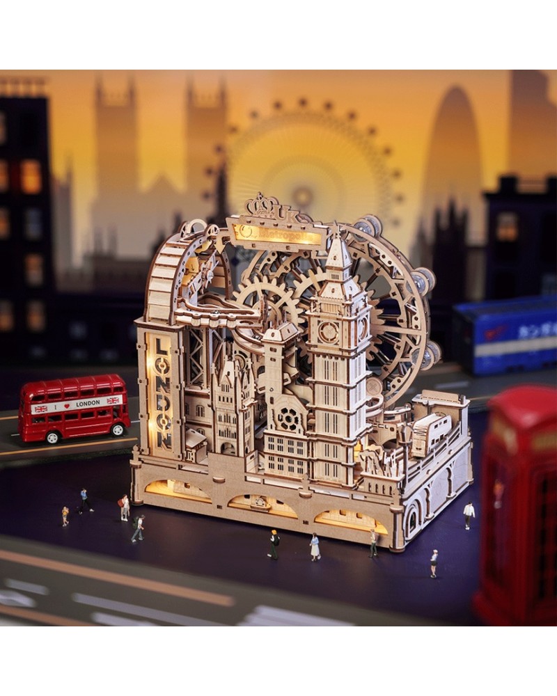 Tip produs: Puzzle mecanic 3D din lemn – traseu cu bile tematizat Londra