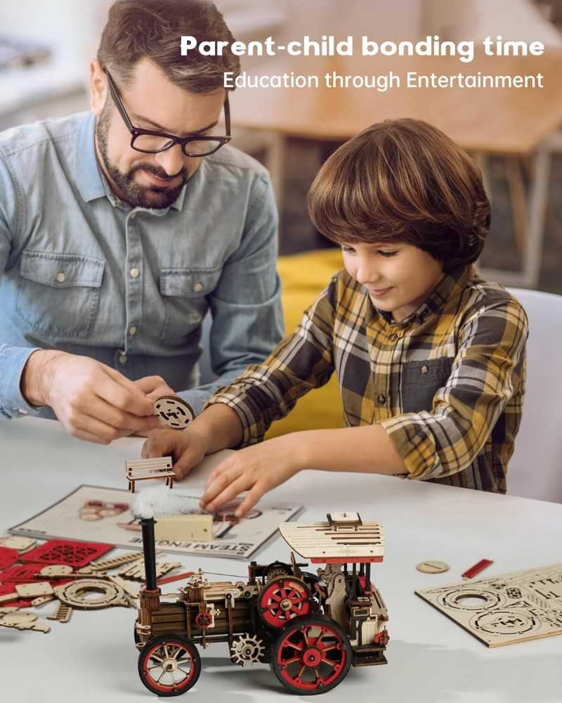 Construiește-ți propriul motor cu abur în mișcare cu un kit din lemn de la Robotime!