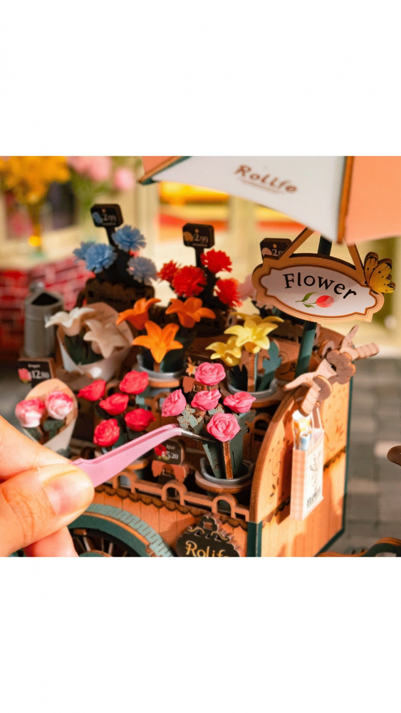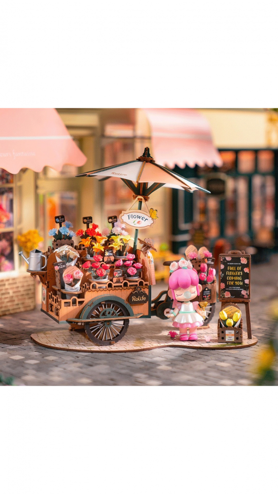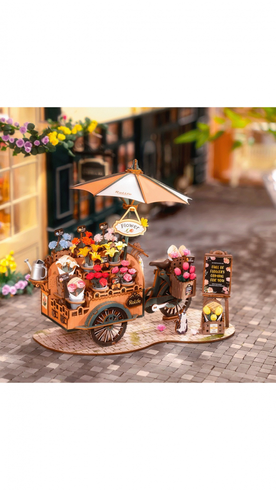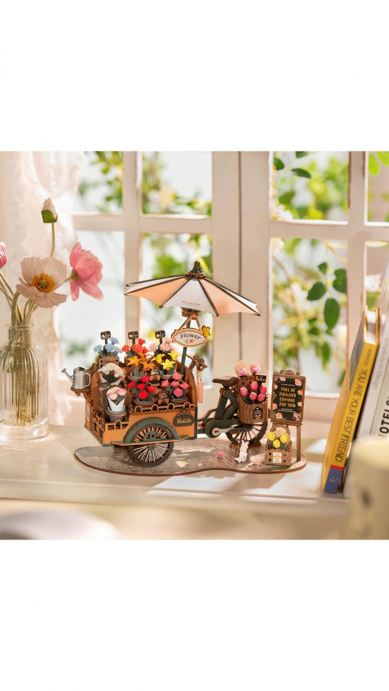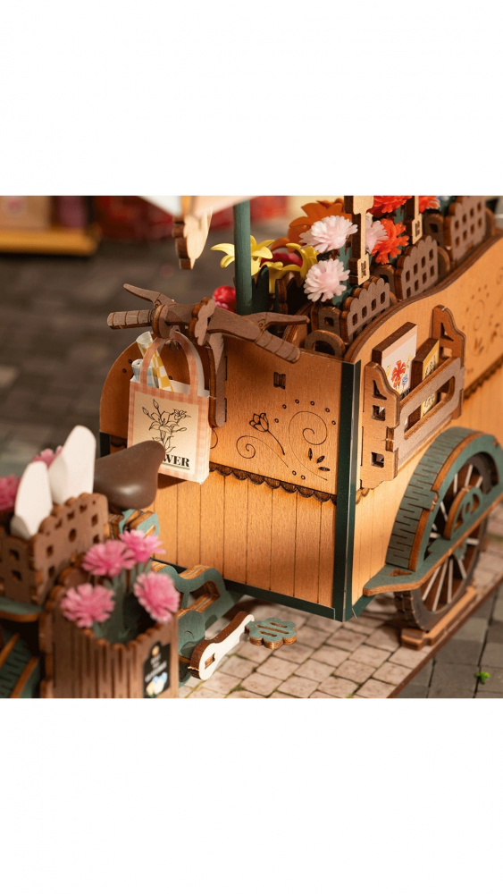 Florile luminează ziua oricui, așa că alegeți un buchet pentru dvs. sau pentru persoana iubită din puzzle-ul din lemn Caruciorul de flori 3D.