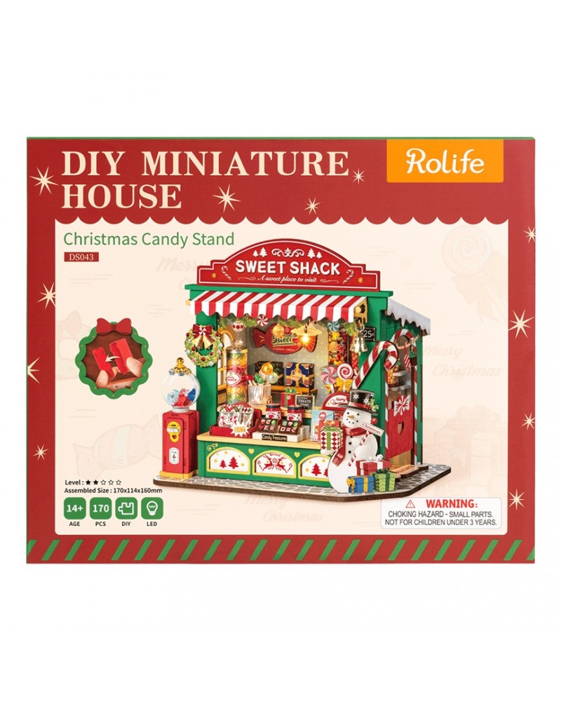 Christmas Candy Stand este un kit miniatural din lemn marca Rolife, perfect pentru pasionatii de proiecte manuale si arta decorativa.