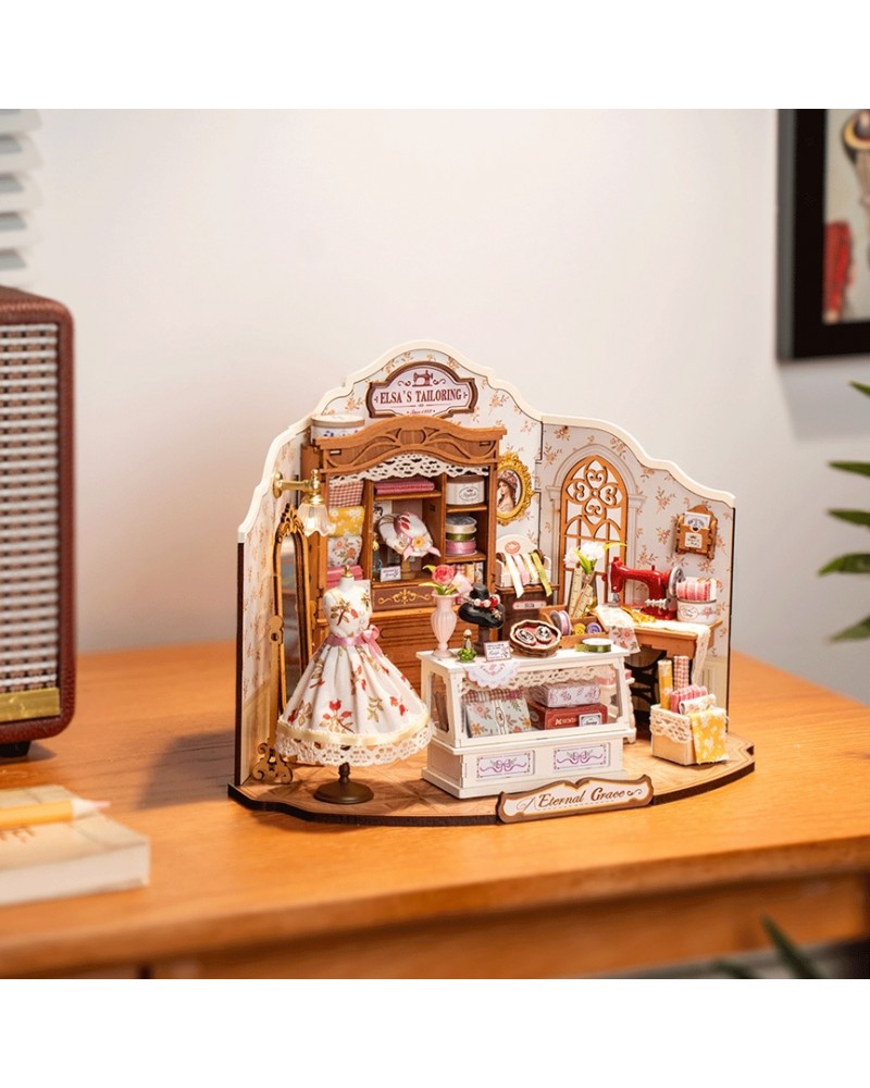 Descopera Elsa’s Tailoring, un atelier de design vestimentar in miniatura, plin de farmec parizian si detalii vintage rafinate. Aceasta mica bijuterie recreeaza atmosfera unui studio francez de croitorie de epoca, plin de viata, eleganta si creativitate.