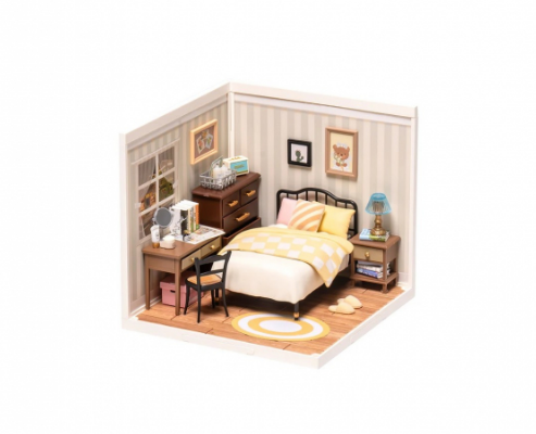 Transformă-ți pasiunea pentru miniaturi într-o experiență relaxantă cu acest kit care recreează o cameră de dormit caldă și elegantă.