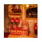 Inspirată din casele clasice din turtă dulce, această miniatură din lemn îmbină detalii dulci, culori festive și lumini calde ce creează o atmosferă de basm.