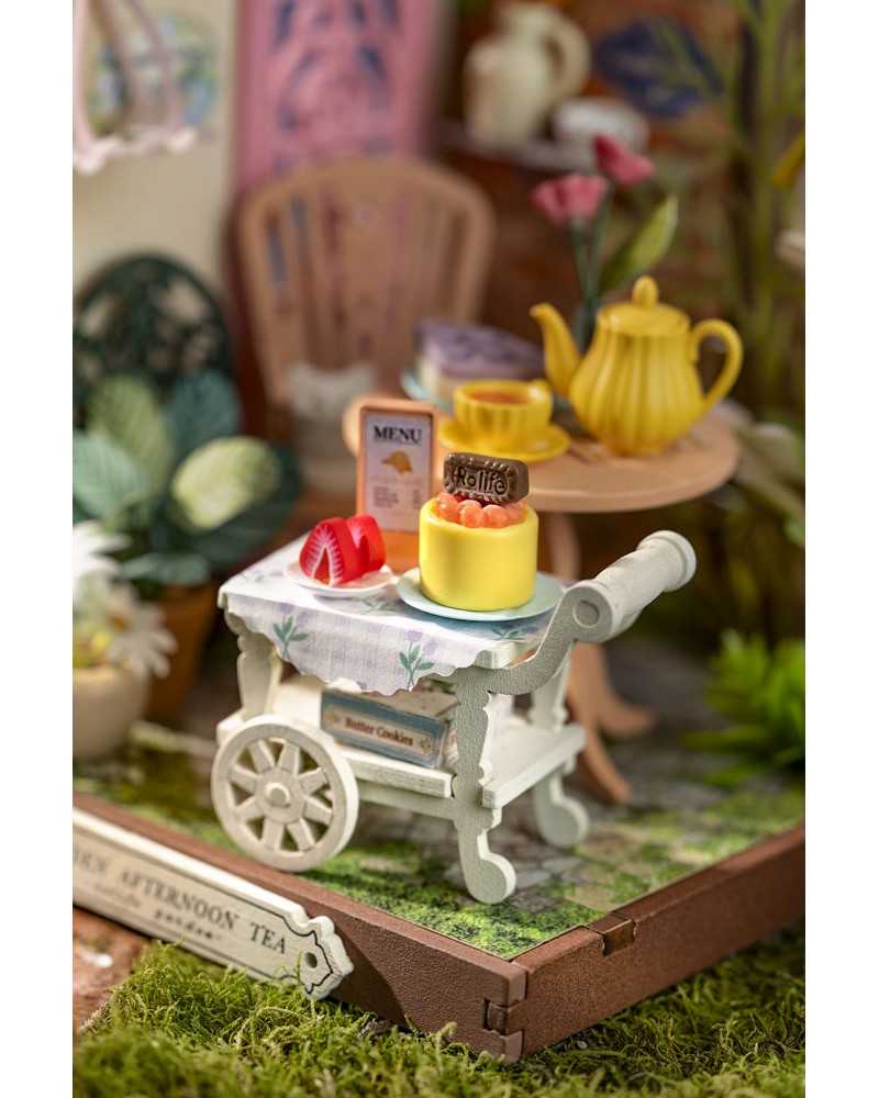 Englezii sunt, fără îndoială, cei mai politicoși băutori de ceai din lume. Este într-adevăr o tradiție ca ei să bea ceaiul de după-amiază în jurul orei 16. De asemenea, servesc cele mai delicioase prăjituri și produse de patiserie. În noua ta casă în miniatură, vei vedea totul din nou, chiar și cu un cărucior de ceai care poartă un produs de patiserie cu o pralină Rolife! Și vei recrea singur toate aceste detalii cu acest kit pentru adulți de 76 de piese.