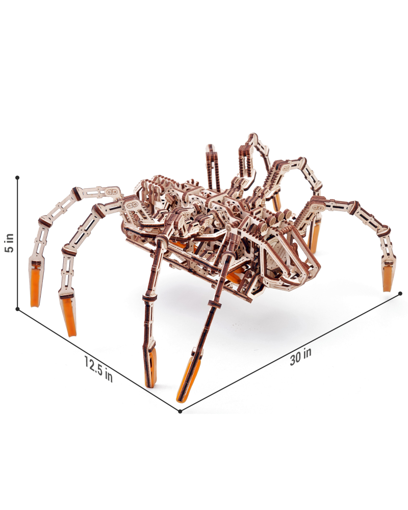 Unul dintre acestea este Paianjenul spatial proiectat de Wood Trick Company. Modelul mecanic este foarte asemanator cu un paianjen adevarat – isi misca picioarele si se misca rapid.