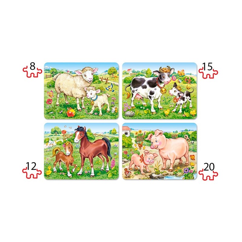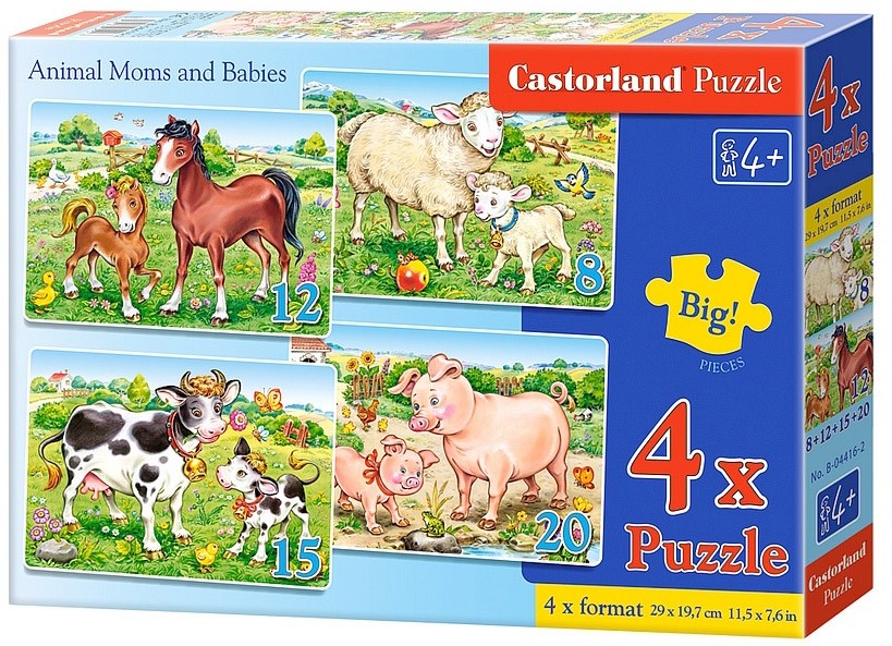 Puzzle 4 in 1 Castorland Animal moms and babies 8, 12, 15 si 20 piese