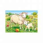 Alta sectiune prezinta o oaie cu doi miei care pasc linistiti intr-o zona cu iarba verde.