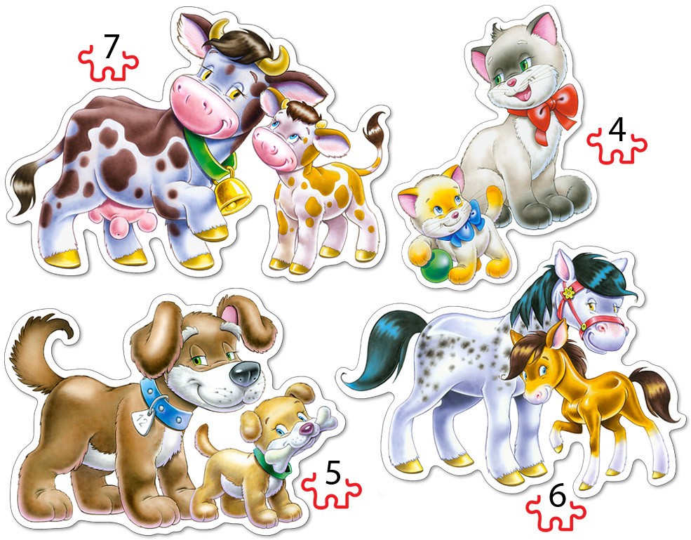 Puzzle 4 in 1 Castorland animals with babies 4, 5, 6 si 7 piese