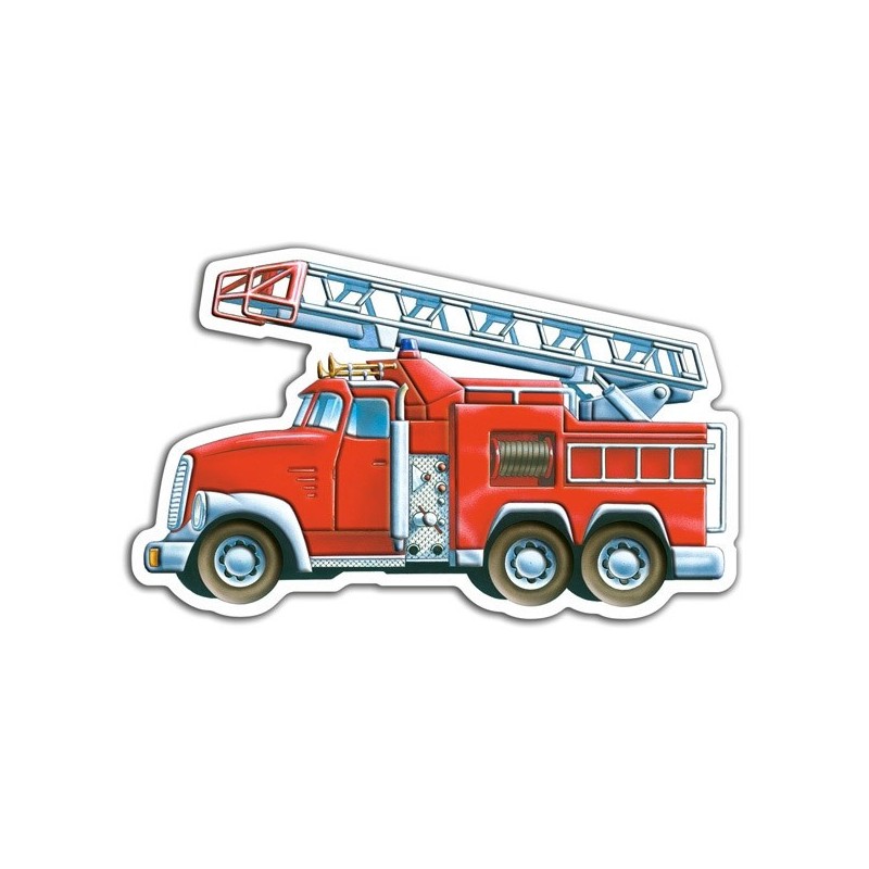 Ilustratia acestui puzzle Castorland 4 in 1 - Vehicles reda patru tipuri de vehicule: un camion de minerit masiv, un tren cu abur, un buldozer si o masina de pompieri, fiecare detaliat si colorat in mod atragator.
