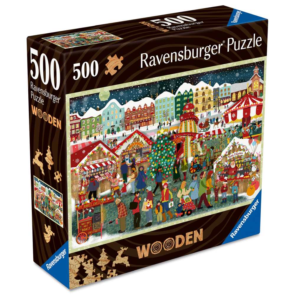 Puzzle 500 piese Ravensburger din lemn Targ de Craciun