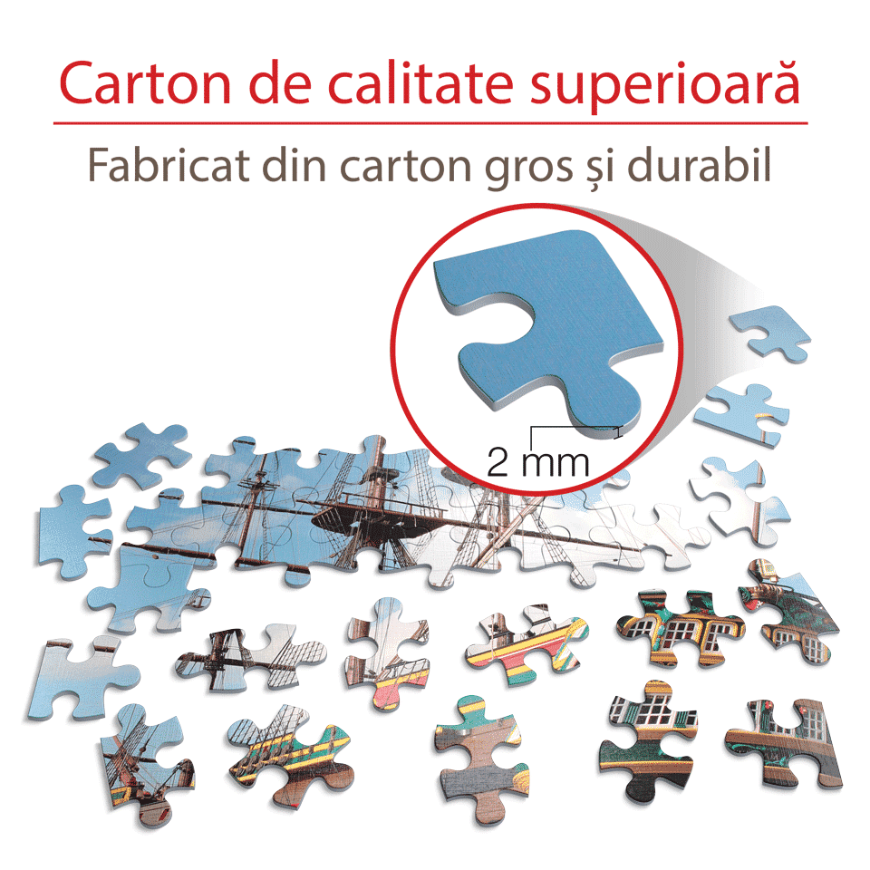 -Fiecare puzzle 1000 piese este produs din carton de calitate superioara care confera durabilitate pieselor chiar si la utilizari multiple.