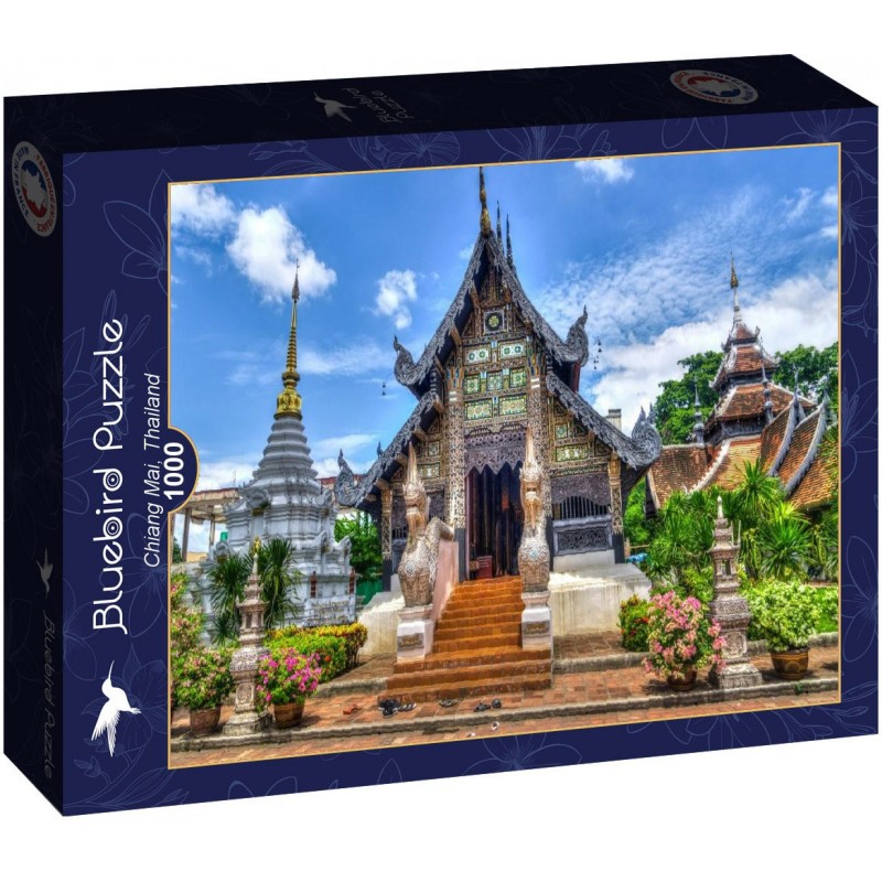 Imaginea acestui puzzle cu 1000 de piese de la Bluebird prezinta un templu traditional thailandez situat in Chiang Mai, un oras cu o bogata istorie culturala.