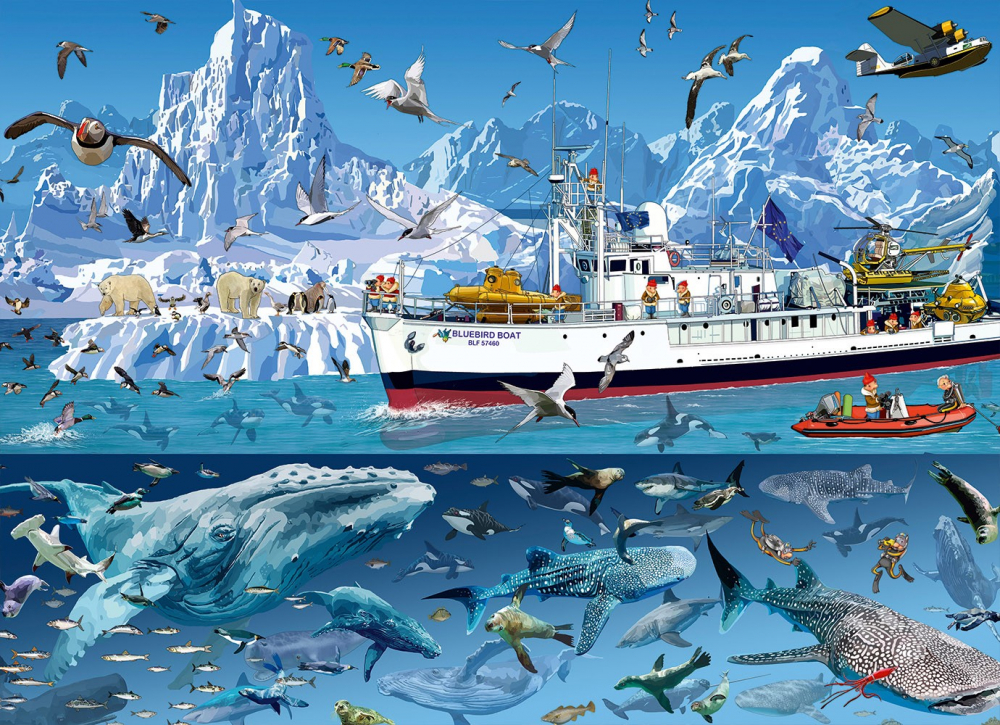 Imaginea puzzle-ului prezinta o ilustratie vibranta si detaliata a unei scene marine arctice.